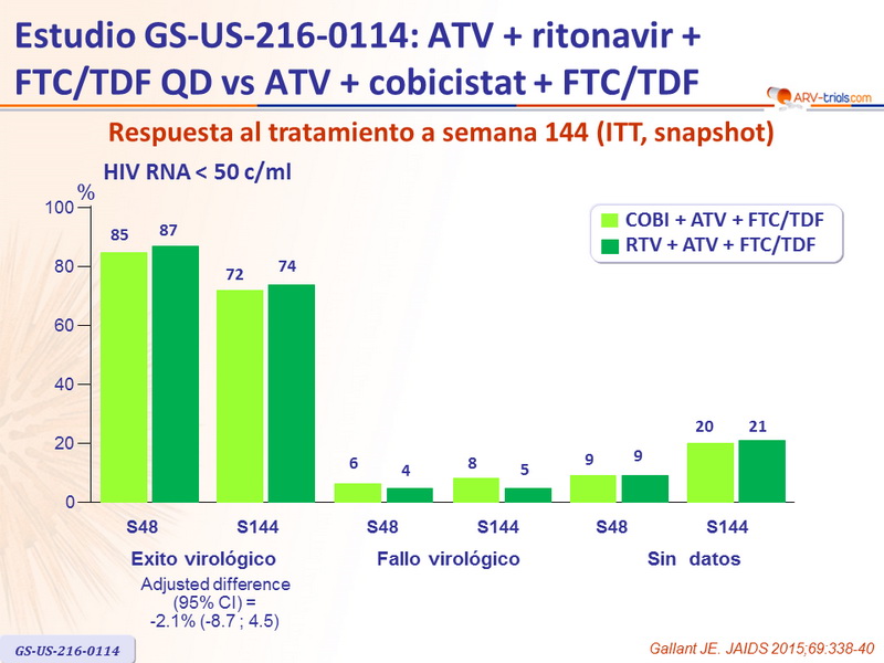 Estudio GS-US-216-0114: ATV + ritonavir + FTC/TDF QD