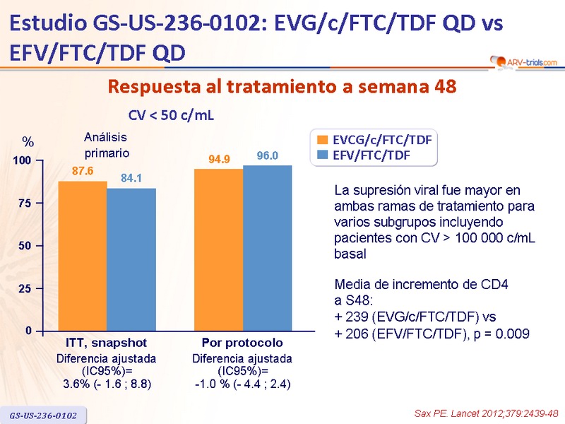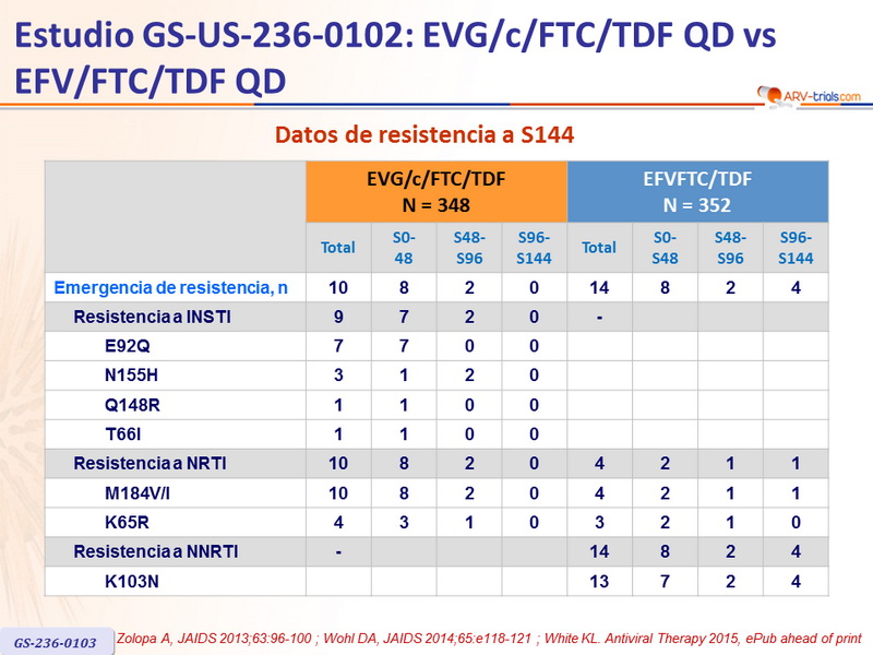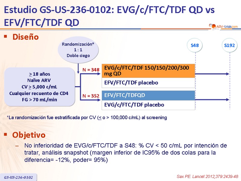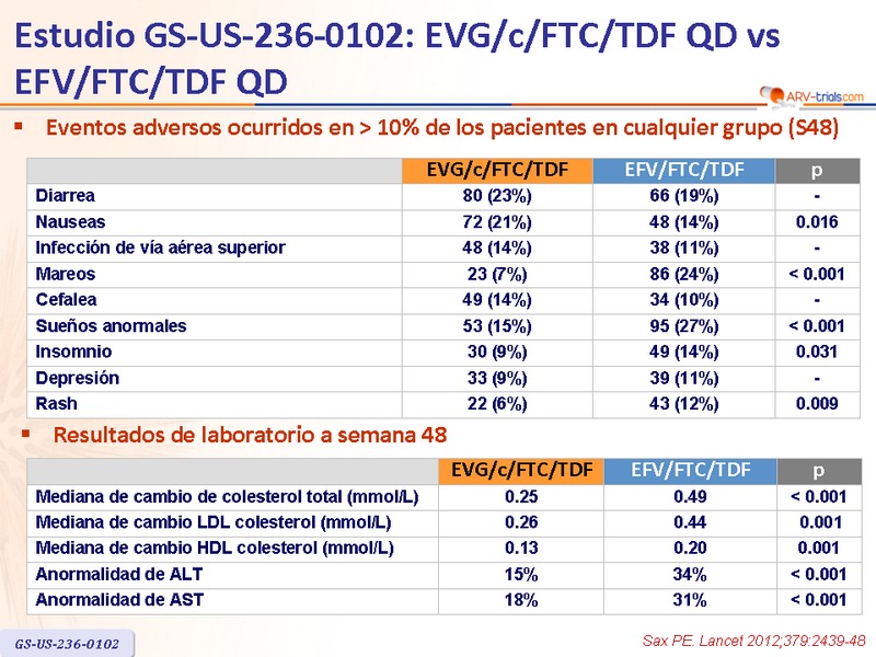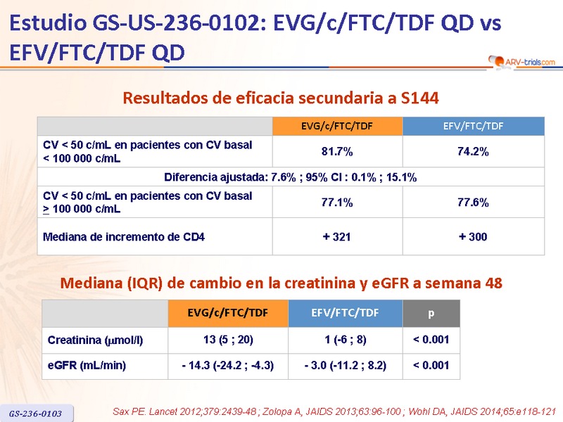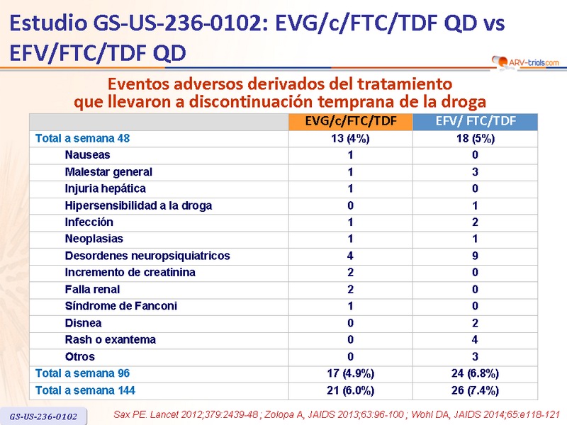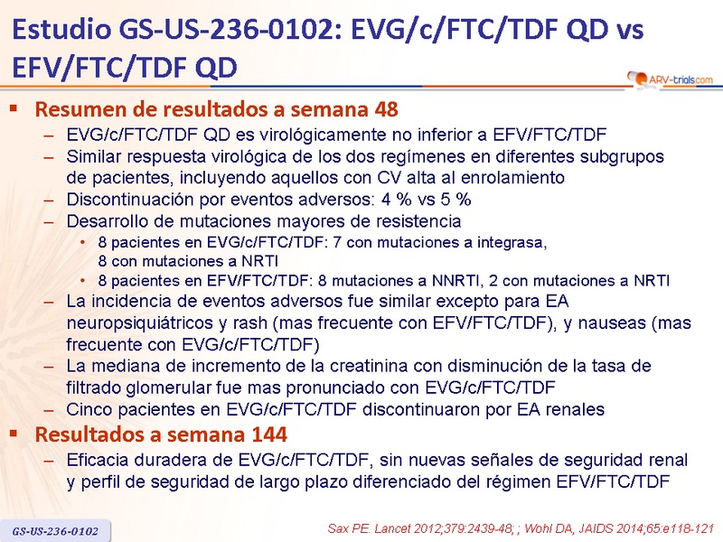 Artículo original : Lancet. 2012 Jun 30;379(9835):2439-48 - PE Sax, J Acquir Immune Defic Syndr. 2013 May 1;63(1):96-100 - A Zolopa, J Acquir Immune Defic Syndr. 2014 Mar 1;65(3):e118-20 - DA Wohl