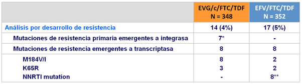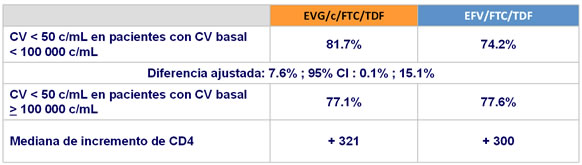 - EVG/c/FTC/TDF QD es virológicamente no inferior a EFV/FTC/TDF