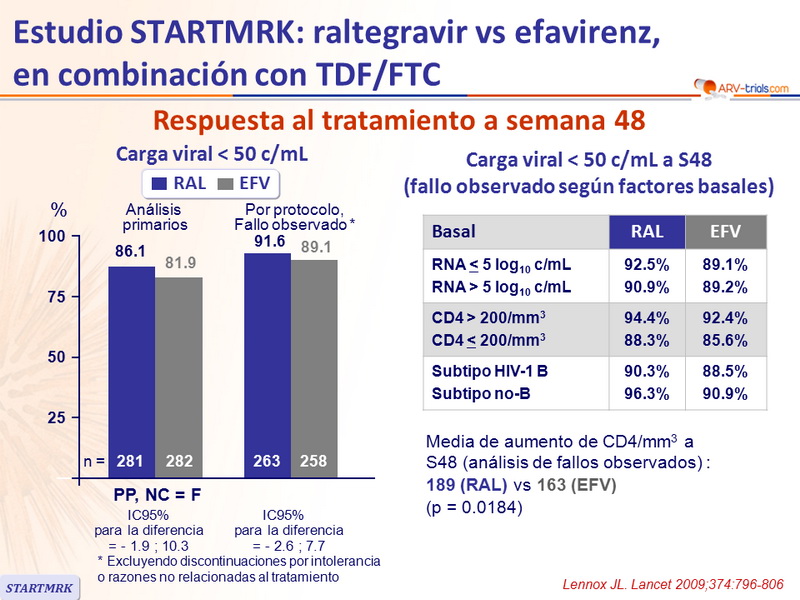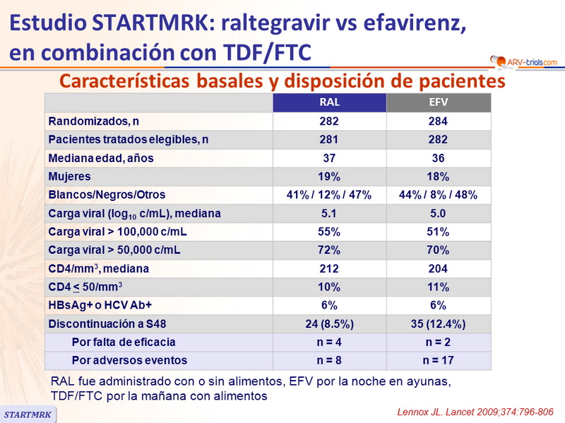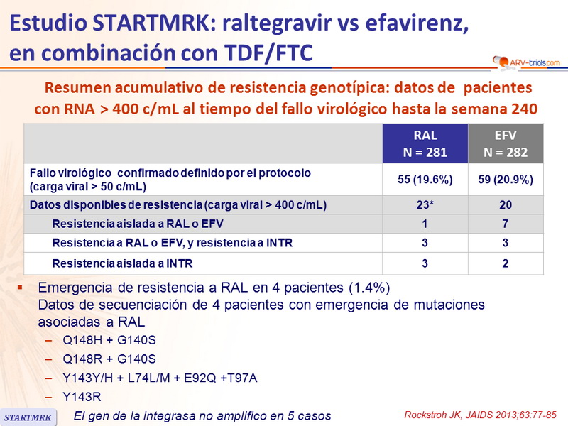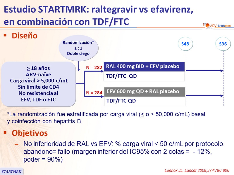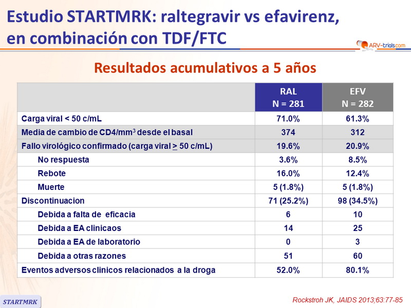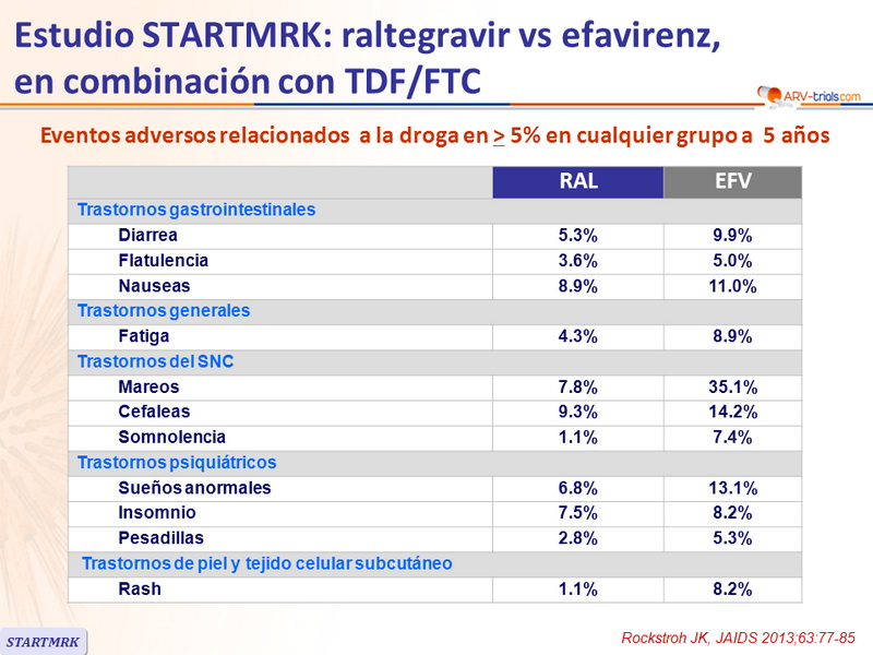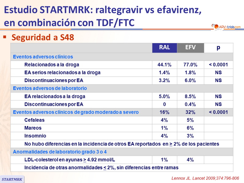 Estudio STARTMRK: raltegravir vs efavirenz,