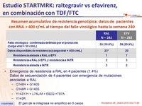 - Emergencia de resistencia a RAL en 4 pacientes (1.4%)