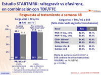 - RAL + TDF/FTC llevo a más rápido descenso de la carga viral (significativamente mas pacientes con carga viral < 50 c/mL a semanas 2 a 16)