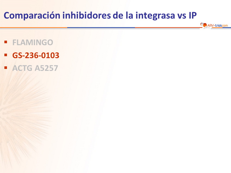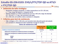 - Fallo virológico o CV ≥ 400 c/mL a al momento de la discontinuación del estudio (a la semana 8 o después de estar recibiendo la droga en estudio)