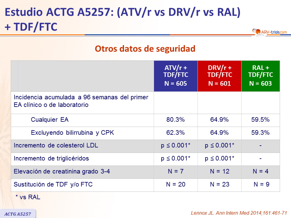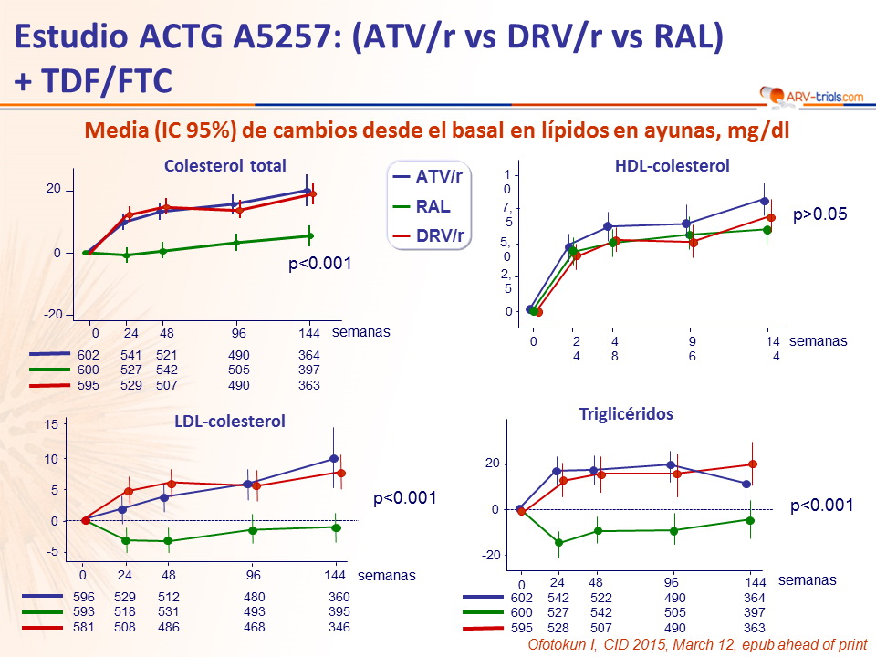 - D-dimer se redujo con ATV/r y DRV/r y no cambio con RAL