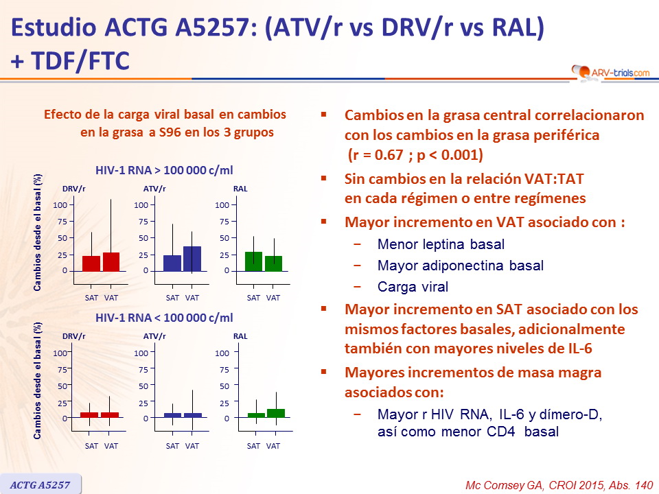 - Cambios en biomarcadores variaron por régimen ARV régimen durante las 96 semanas de seguimiento :