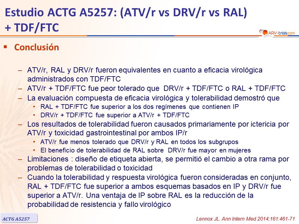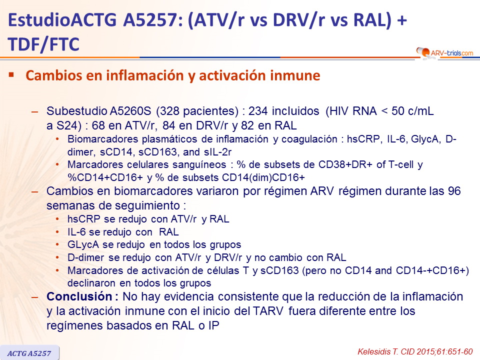 - Conclusión : No hay evidencia consistente que la reducción de la inflamación y la activación inmune con el inicio del TARV fuera diferente entre los regímenes basados en RAL o IP