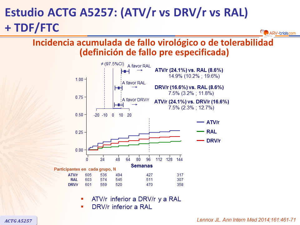 - ATV/r inferior a DRV/r y a RAL