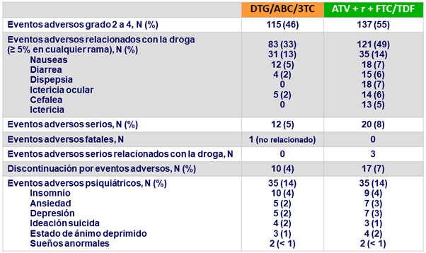 - DTG DTG/ABC/3TC tuvo un favorable perfil de seguridad comparado con