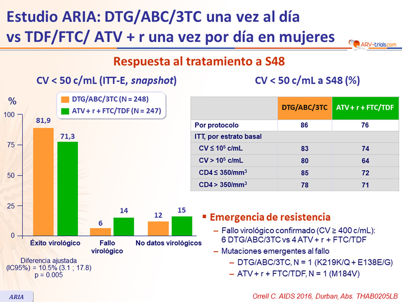 - En mujeres na ï ve de ARV, DTG/ABC/3TC fue superior a