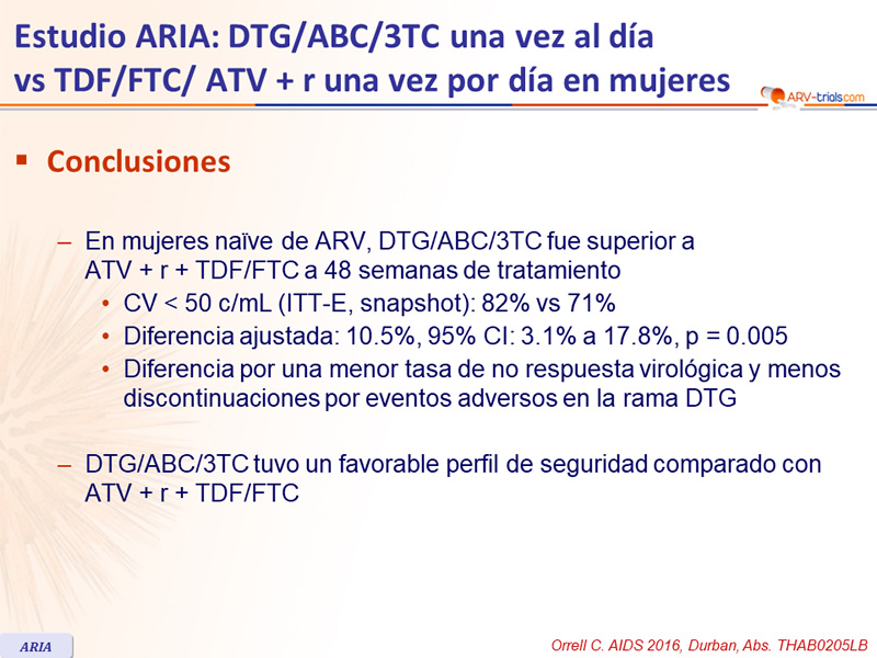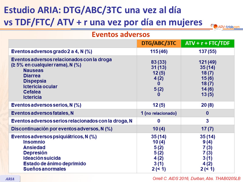 Estudio ARIA : DTG/ABC/3TC una vez al día
