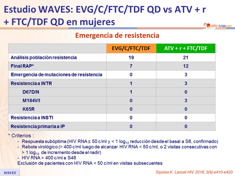 - Rebote virológico (> 400 c/ml luego de alcanzar HIV RNA < 50 c/ml, o 2 visitas consecutivas con > 1 log10 de incremento desde el nadir)