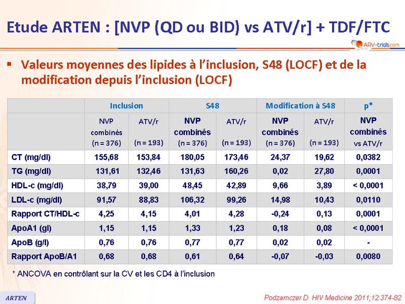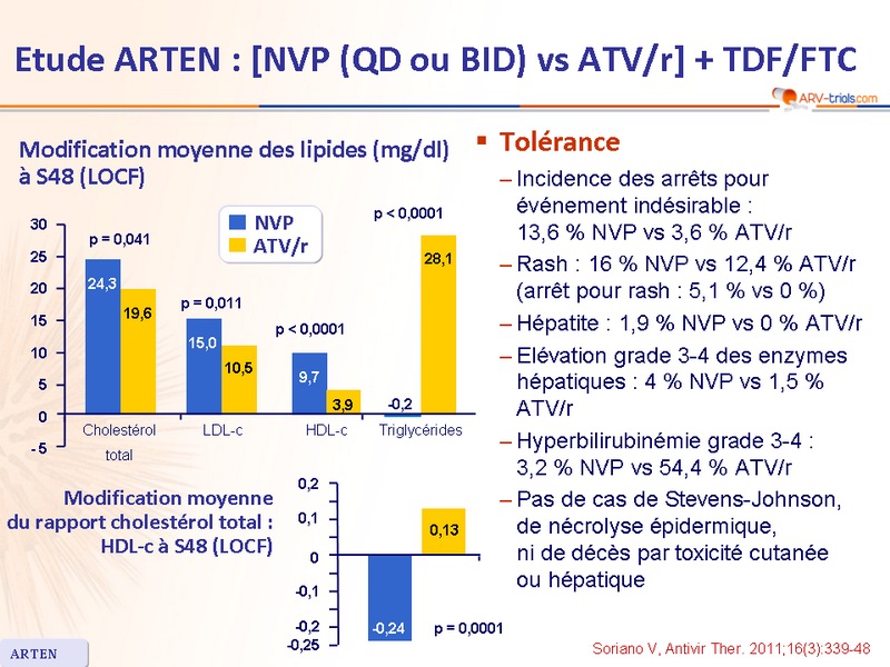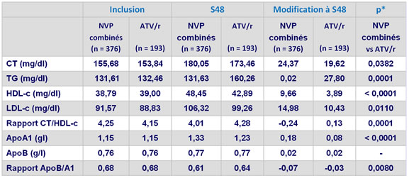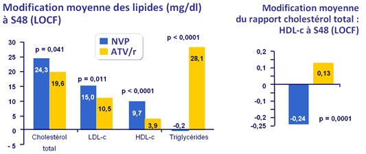 - NVP est associé avec un profil lipidique moins athérogène que ATV/r