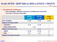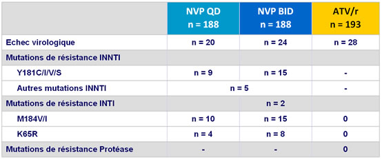 - A l'échec virologique, il y avait un taux élevé de mutations de résistance sélectionnées avec NVP et aucune avec ATV/r