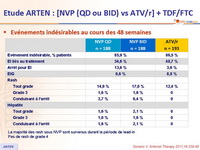 - Incidence des arrêts pour événement indésirable : 13,6 % NVP vs 3,6 % ATV/r