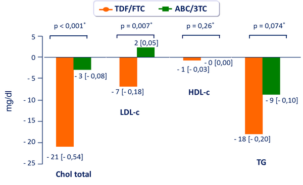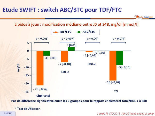 Lipides à jeun : modification médiane entre J0 et S48, mg/dl [mmol/l] :