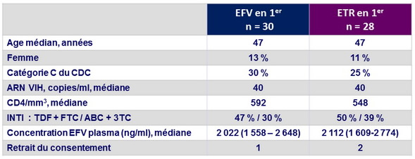 - Taux lipides significativement plus bas avec ETR que avec EFV