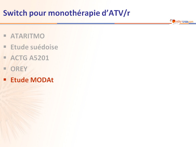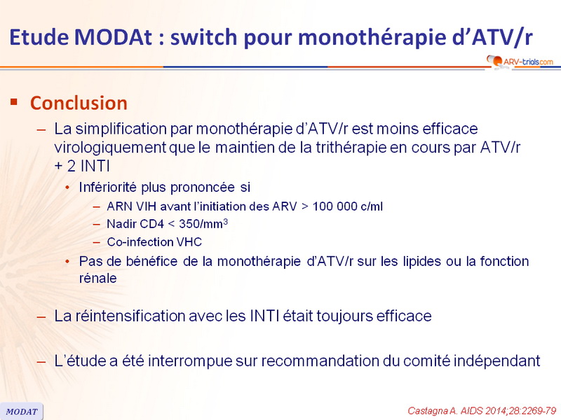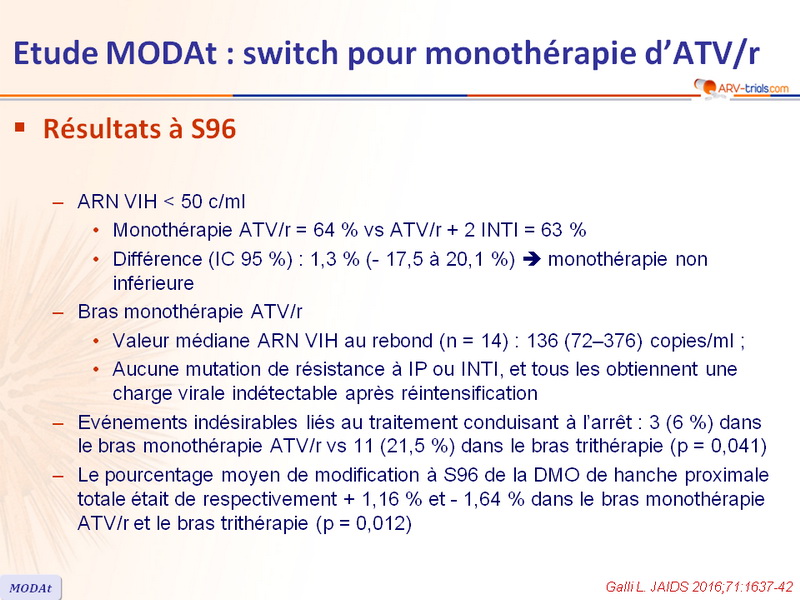 Etude MODAt : switch pour monothérapie d'ATV/r