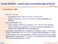 - Monothérapie ATV/r = 64 % vs ATV/r + 2 INTI = 63 %