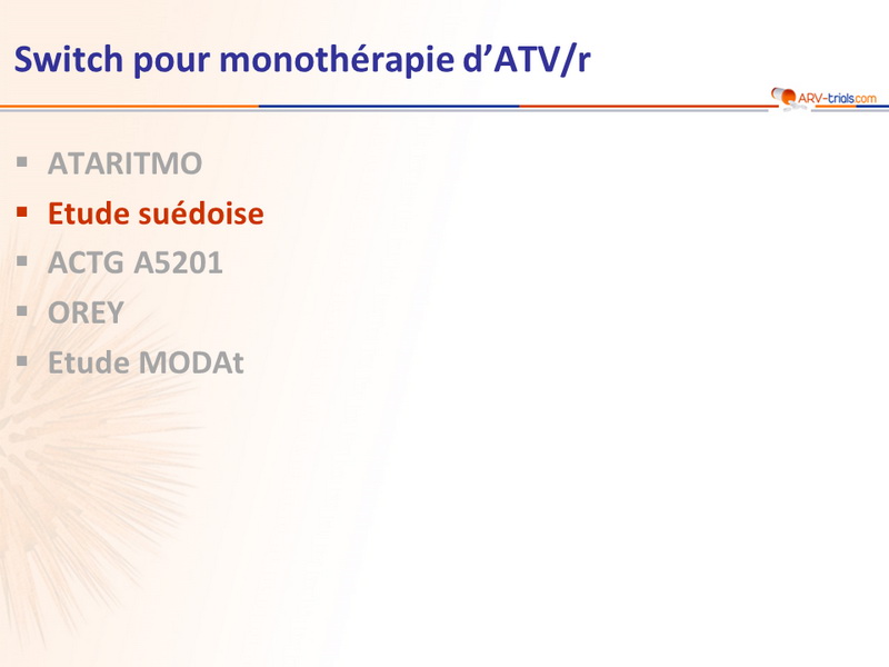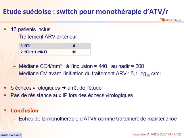 - Echec de la monothérapie d’ATV/r comme traitement de maintenance