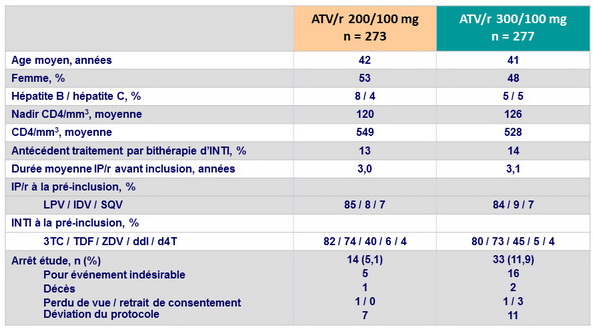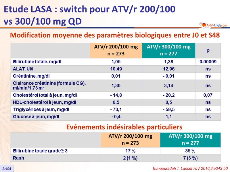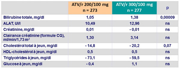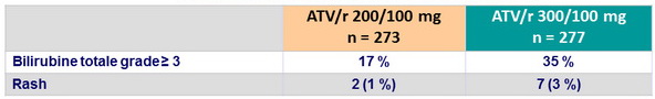 - ATV/r 300/100, n = 21 (8 %): 1 décès, 7 rashes, 6 ictères,