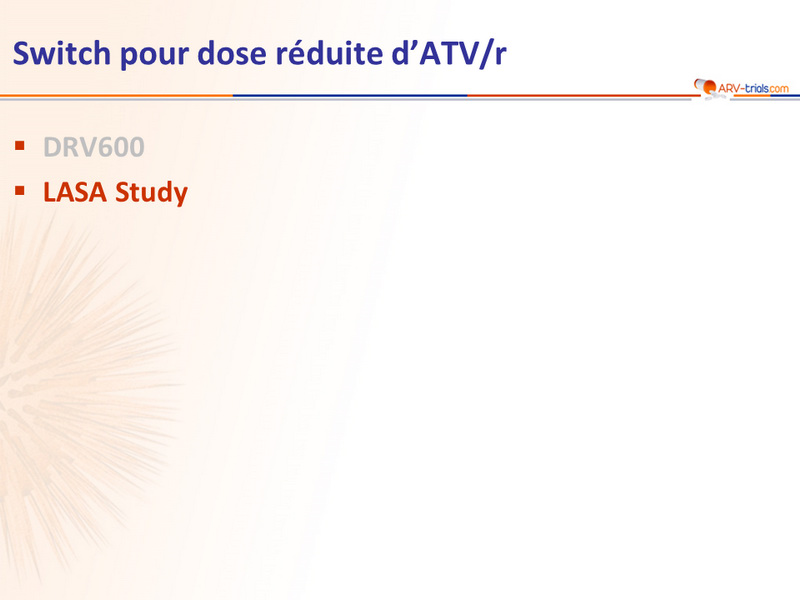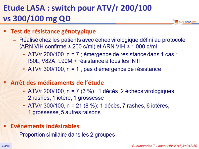 - ATV/r 200/100, n = 7 (3 %) : 1 décès, 2 échecs virologiques,