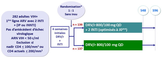 de DRV/r en 1 prise/jour n'était pas non inférieure en terme de suppression virologique à S48 à une trithérapie associant 2 INTI
