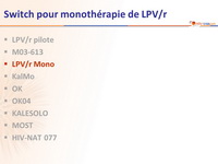 - La monothérapie de LPV/r est une stratégie potentielle chez les patients avec charge virale indétectable sous un schéma comportant un IP/r