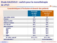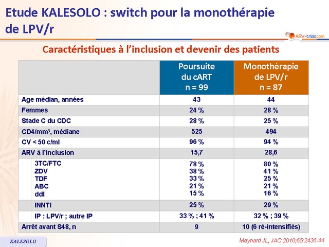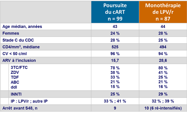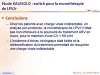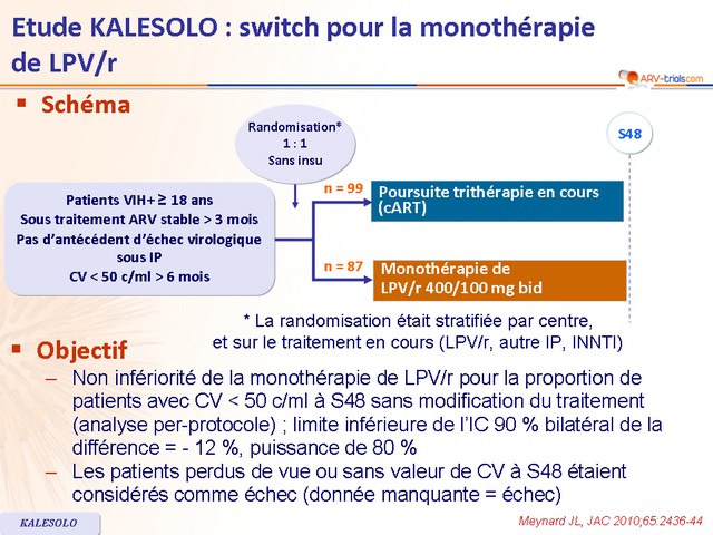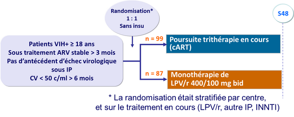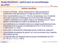 - Non infériorité de la monothérapie de LPV/r non démontrée