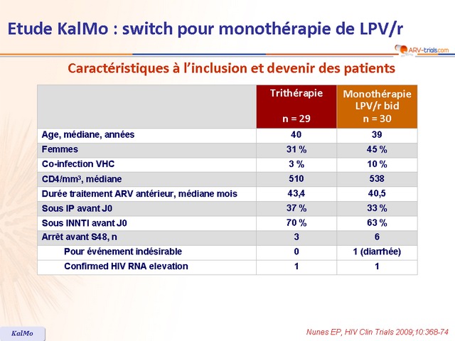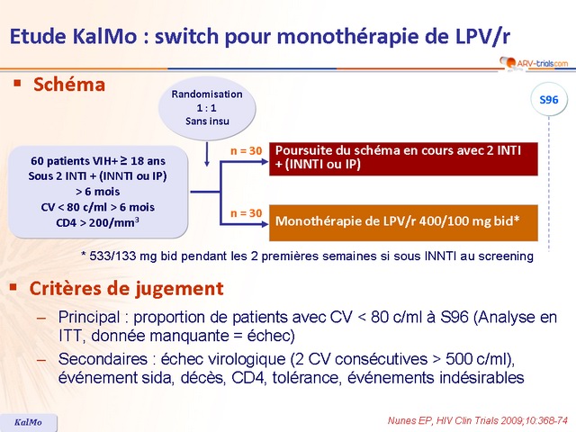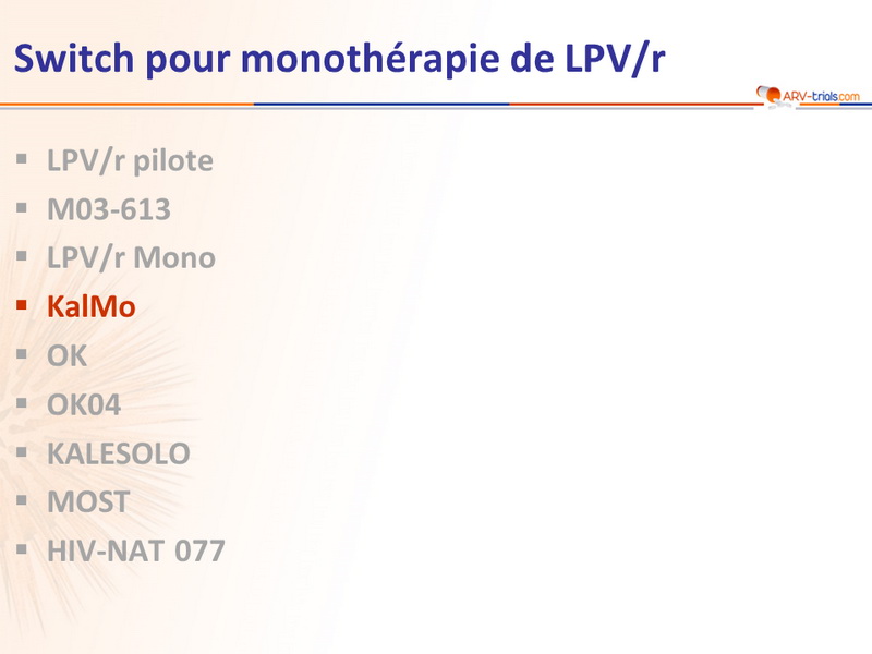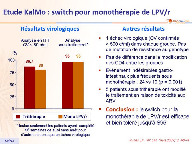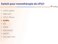 - Le switch pour la monothérapie de LPV/r est efficace et bien toléré jusqu’à S96