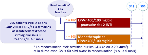 - Les résultats à S96 montrent l’efficacité et la tolérance de la stratégie de monothérapie de LPV/r