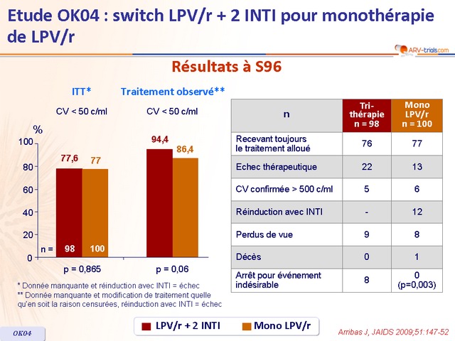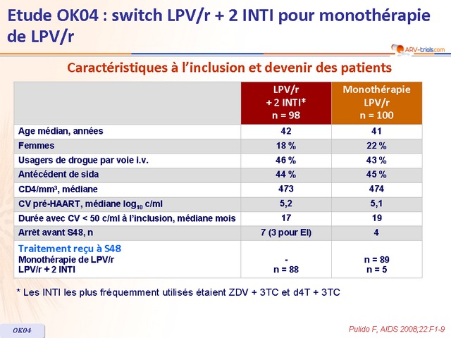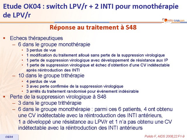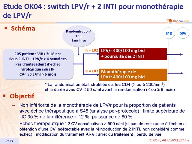 Etude OK04 : switch LPV/r + 2 INTI pour monothérapie