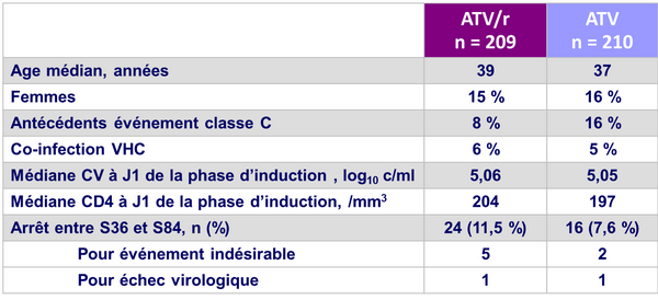 S0-S36 : tous les patients recevaient un traitement d’induction par ABC/3TC + ATV/r