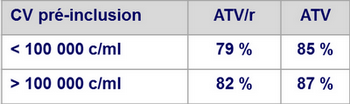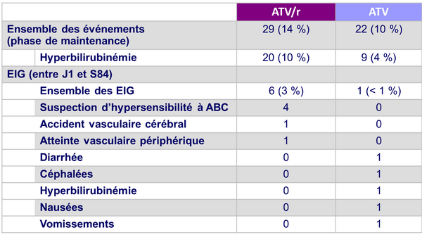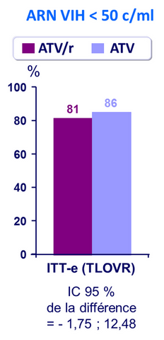 - Est efficace et bien toléré chez les patients qui ont obtenu une charge virale indétectable avec un traitement d’induction de 36 semaines par ATV/r + ABC/3TC