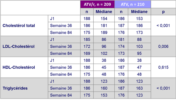 - Secondaires : échec thérapeutique, CD4, lipides à jeun, événements indésirables