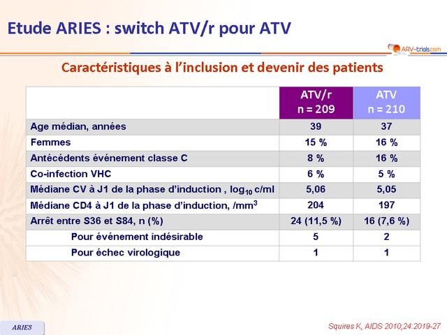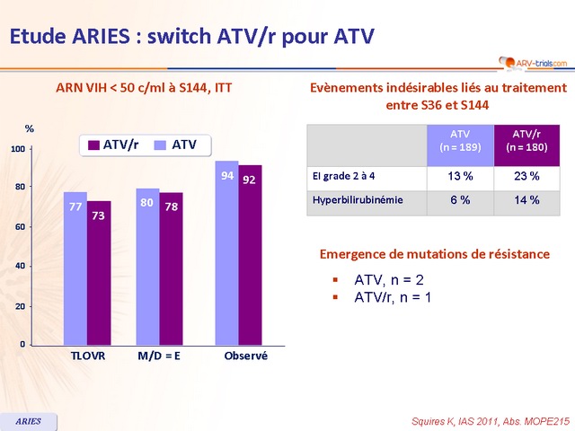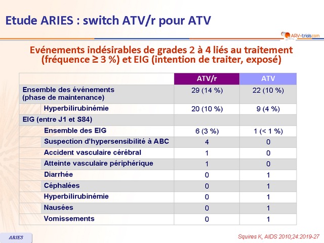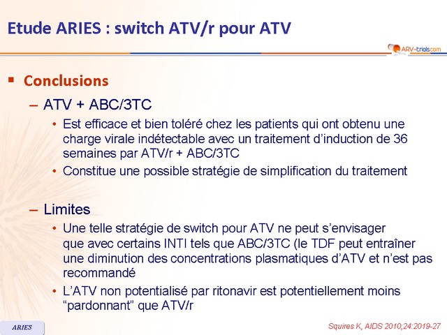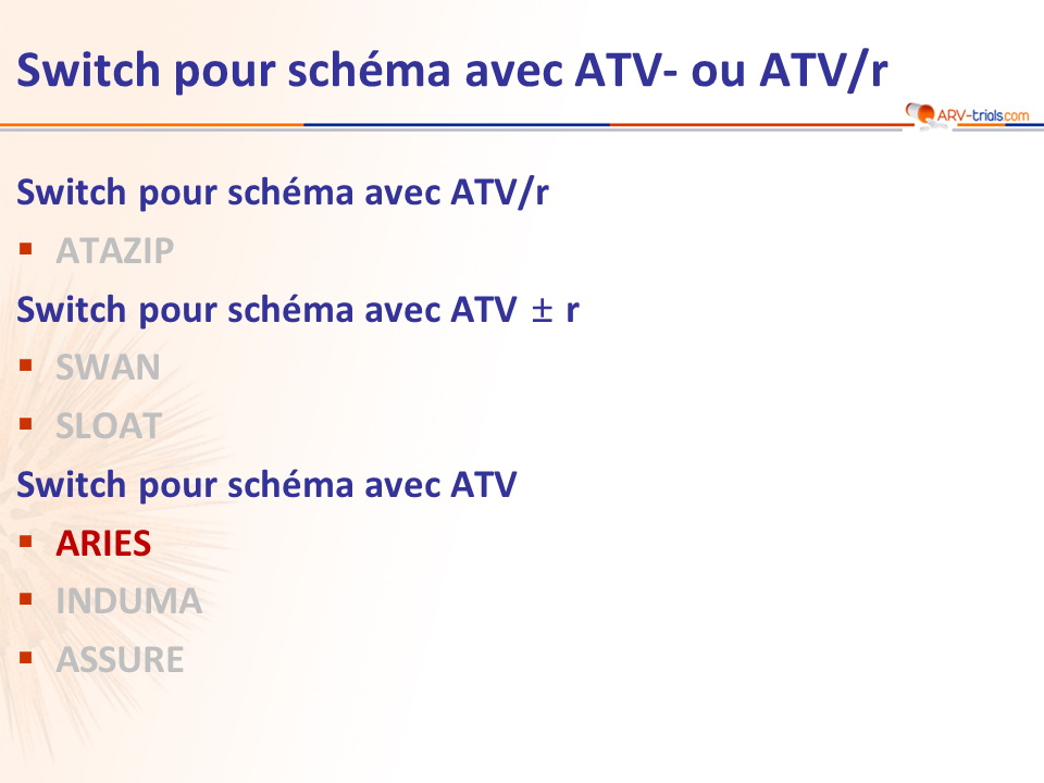 - Une telle stratégie de switch pour ATV ne peut s’envisager que avec certains INTI tels que ABC/3TC (le TDF peut entraîner une diminution des concentrations plasmatiques d’ATV et n’est pas recommandé