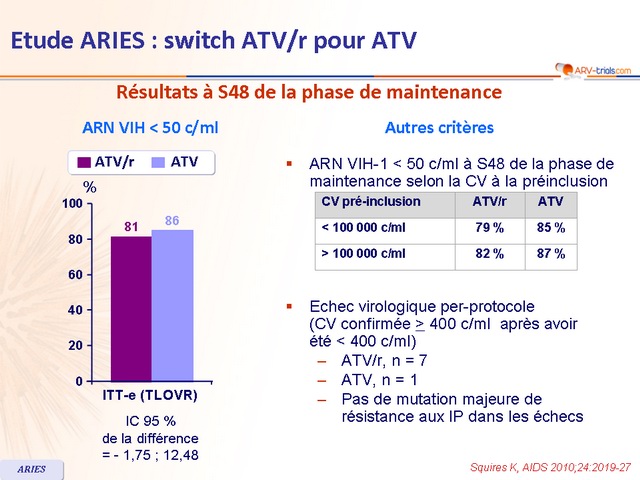 - L’ATV non potentialisé par ritonavir est potentiellement moins “pardonnant” que ATV/r