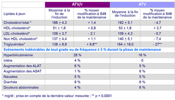 Modification des lipides et événements indésirables durant la phase de maintenance