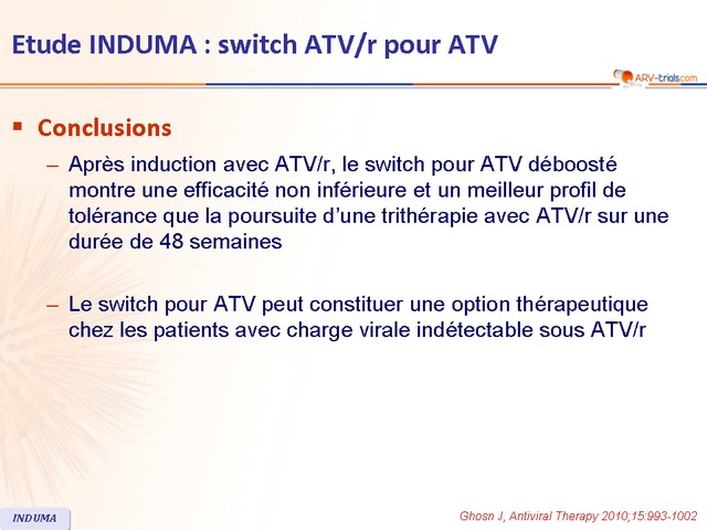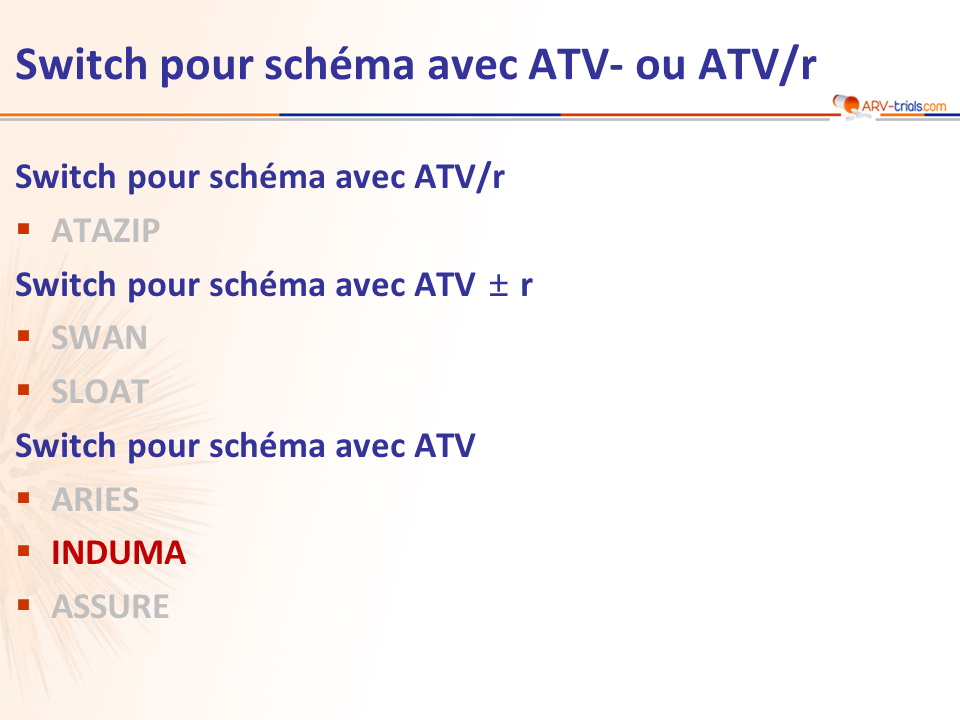 - Le switch pour ATV peut constituer une option thérapeutique chez les patients avec charge virale indétectable sous ATV/r