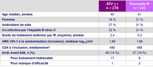 - TDF faisait partie du traitement en cours chez 37 patients (9 %) [26 dans le groupe ATV]