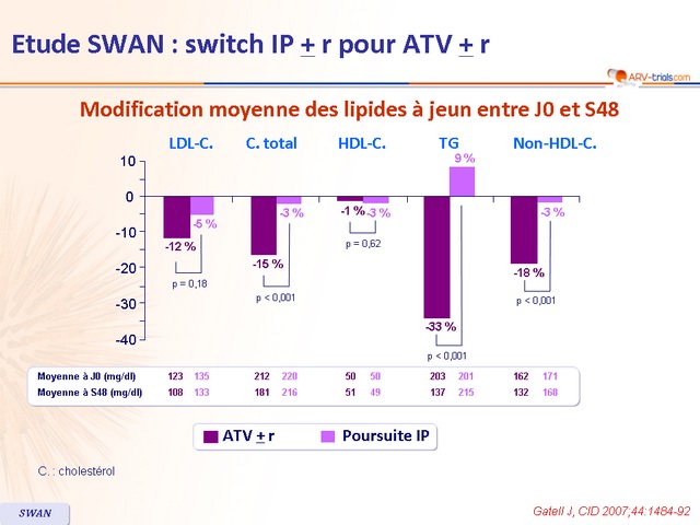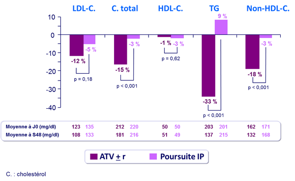 - Les paramètres lipidiques s’amélioraient sous ATV