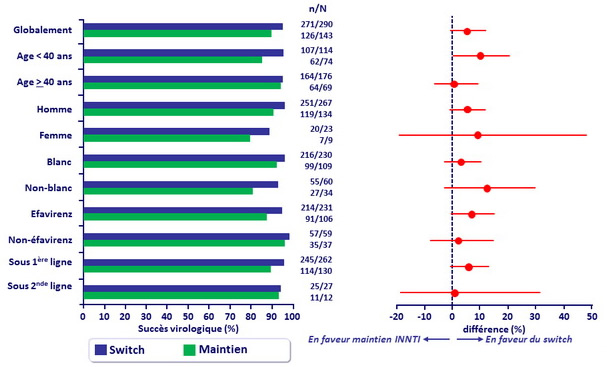 - Dans le sous-groupe avec switch de EFV + FTC + TDF pour EVG/c/FTC/TDF