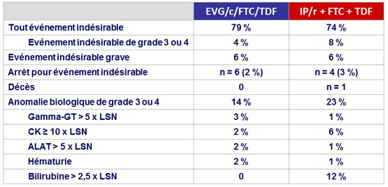 - Faible fréquence des échecs virologiques et absence d'émergence de résistance dans le groupe switché pour EVG/c/FTC/TDF