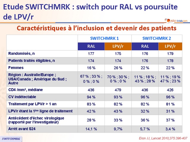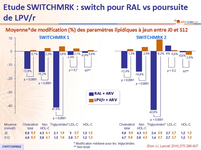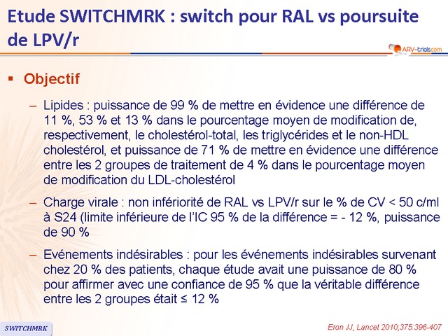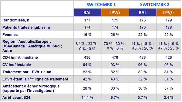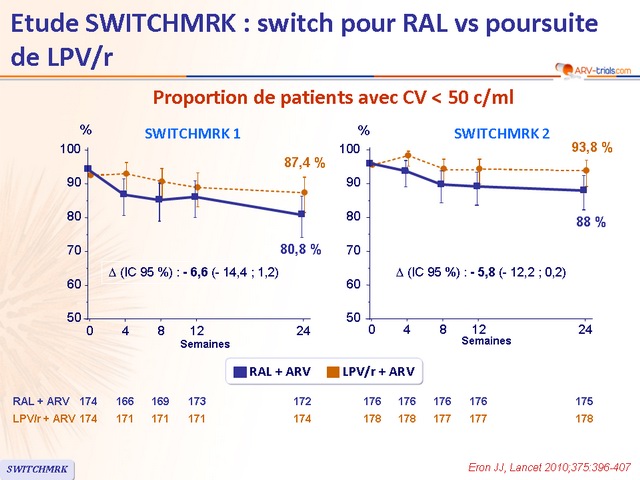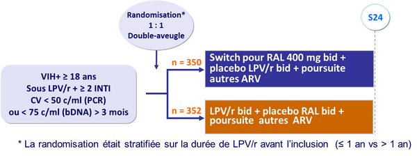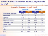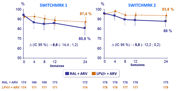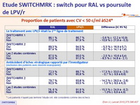 - Chez les patients avec charge virale indétectable sous LPV/r, le switch de LPV/r pour RAL était associé, à S24, à