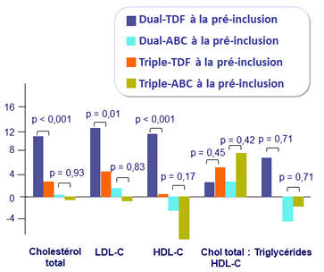 % de modification moyenne des lipides à jeun selon les INTI à la pré-inclusion