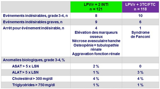 - La bithérapie de LPV/r + 3TC ou FTC a le bénéfice potentiel de préserver les options futures, réduisant le coût du traitement antirétroviral et minimisant la toxicité potentielle à long terme