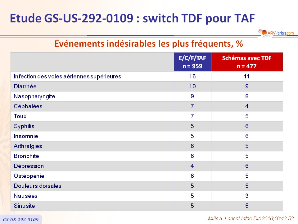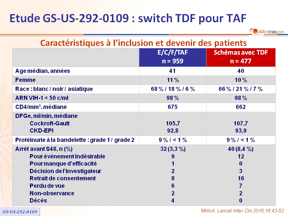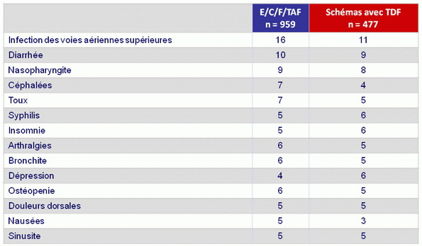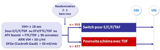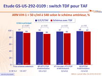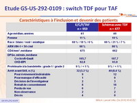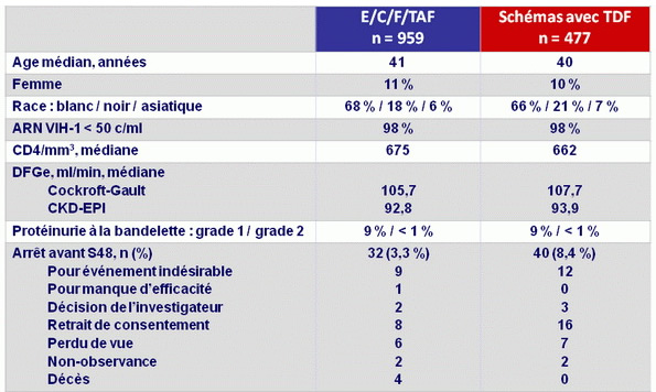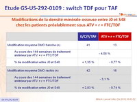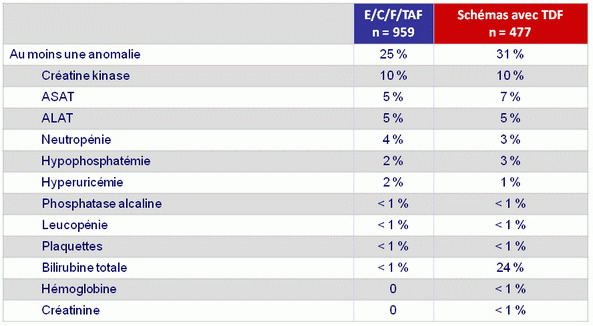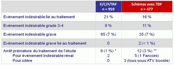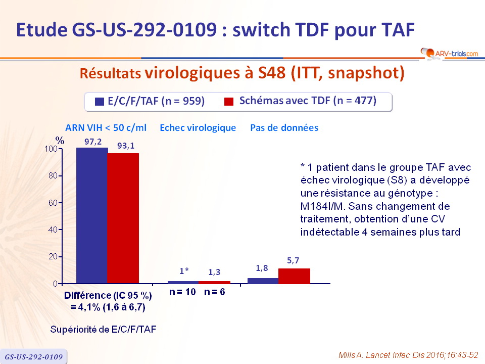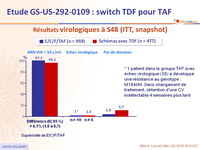 * 1 patient dans le groupe TAF avec échec virologique (S8) a développé une résistance au génotype : M184I/M.