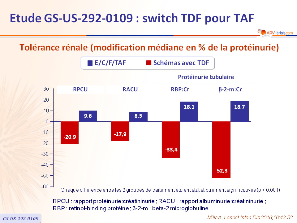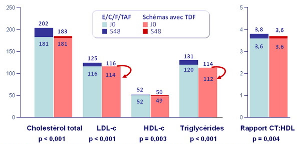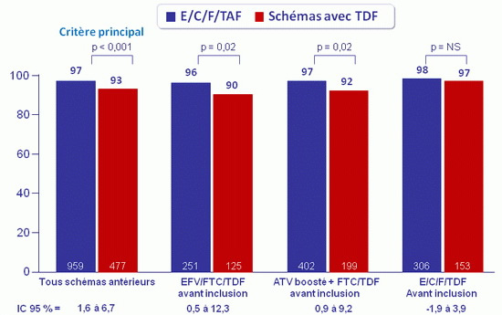 Différences entre E/C/F/TAF et schémas avec TDF statistiquement significatives (p < 0,001)