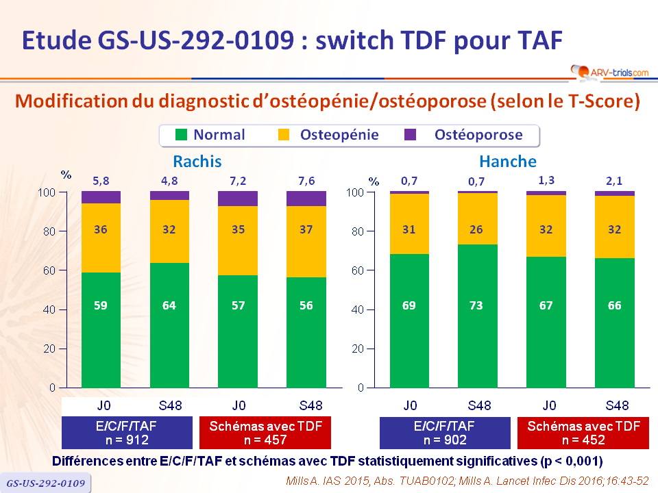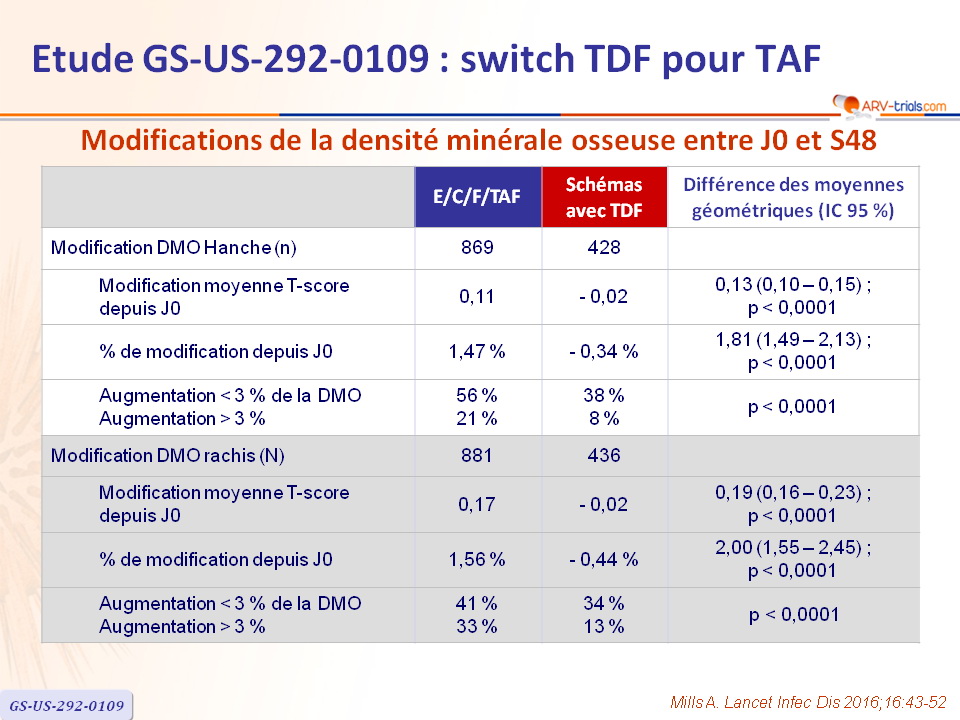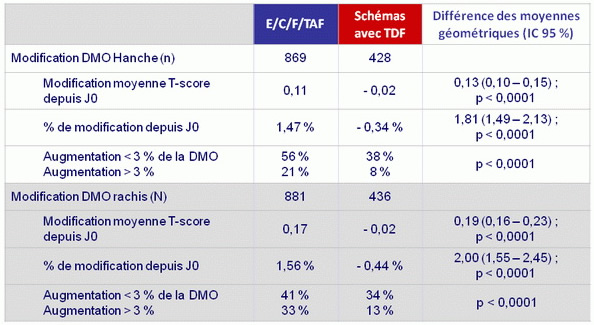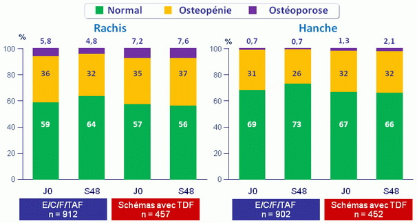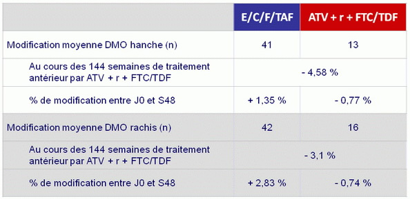 Modifications de la densité minérale osseuse entre J0 et S48 chez les patients préalablement sous ATV + r + FTC/TDF