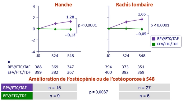 - Le traitement en 1 seul comprimé par jour de rilpivirine, emtricitabine, et tenofovir alafenamide était bien toléré avec amélioration significative des paramètres osseux et rénaux