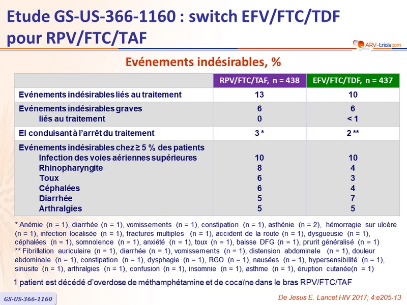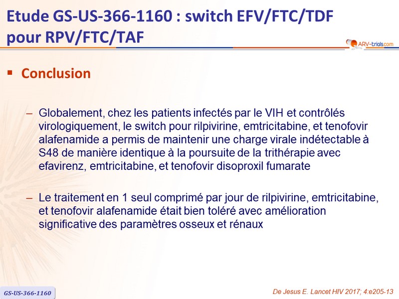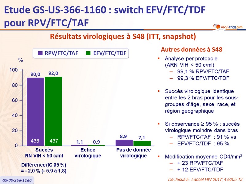 Article original : De Jesus E. Lancet HIV 2017; 4:e205-13